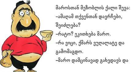 – რა ვიცი, ქმარს ვუთხარი გღალატობო და გამომაგდო.