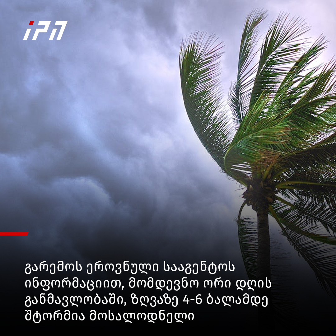 გარემოს ეროვნული სააგენტოს ინფორმაციით, მომდევნო ორი დღის განმავლობაში, ზღვაზე 4-6 ბალამდე შტორმია მოსალოდნელი.