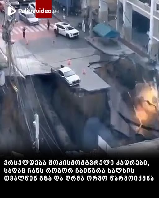 კადრებში ჩანს, რომ ნგრევამ თან რამდენიმე ელექტროგანათების ბოძი ჩაიტანა და მიწისქვეშა კომუნიკაციები გააშიშვლა, პანიკაში ჩავარდნილი ფეხით მოსიარულეები და მანქანები კი ინციდენტის ადგილიდან თავის დაღწევას ცდილობენ.